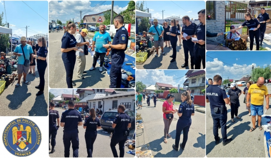 În acest sfârșit de săptămână, polițiștii Compartimentului de Analiză și Prevenire a Criminalității și ai Poliției Municipiului Adjud, împreună cu jandarmi din cadrul Inspectoratului de Jandarmi Județean Vrancea, au desfășurat activități preventive pe linia prevenirii infracțiunilor contra patrimoniului, cu accent pe prevenirea furturilor din buzunare, genți și poșete.