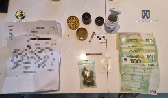 În urma perchezițiilor, au fost descoperite și ridicate mai multe documente și înscrisuri, 2.100 de euro, două telefoane mobile, 10 grame de cannabis, 1 gram de cocaină și 2 grindere.