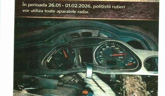 Astfel, având în vedere Calendarul de acțiuni pentru reducerea riscului rutier în anul 2026, în perioada 26.01 - 01.02.2026, în județul Vrancea se desfășoară activități specifice de prevenire și control, destinate impunerii respectării regimului legal de viteză.