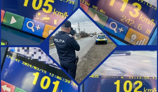 De asemenea, au fost reținute 5 permise de conducere, dintre care 4 pentru depășirea vitezei legale (101, 102, 105, respectiv 113 km/h în localitate) și au fost retrase 16 certificate de înmatriculare.