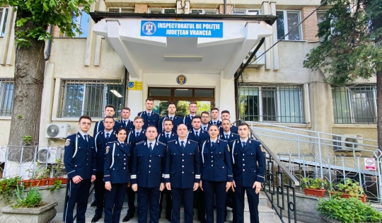 Șaptesprezece absolvenți ai Școlii de Agenți de Poliție „Vasile Lascăr” Câmpina, care se alătură colectivului instituției, au fost întâmpinați, astăzi, 29 aprilie 2024, la sediul Inspectoratului de Poliție Județean Vrancea.