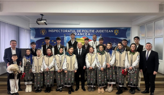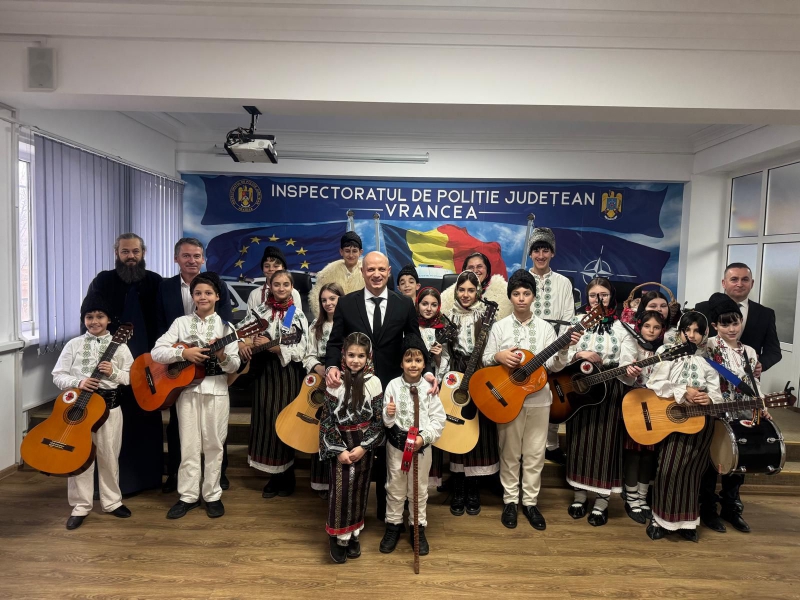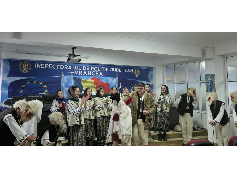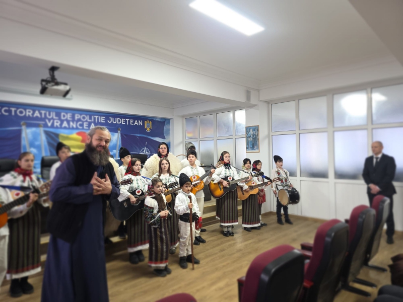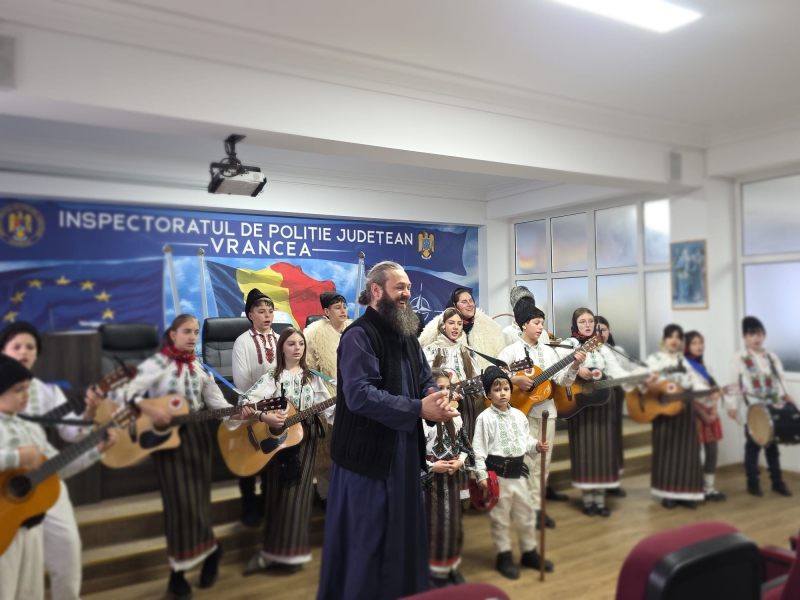 Polițiștii vrânceni au avut plăcerea de a primi colindători deosebiți, Rapsodia Vultureană și Corul Parohiei Irești, care au adus colinde autentice, emoție și multă căldură sufletească.