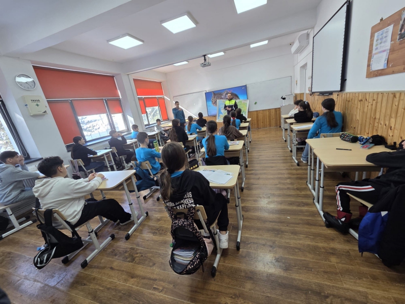 Polițiștii au interacționat cu 50 de elevi, abordând teme critice precum prevenirea bullying-ului, a cyberbullying-ului și a delincvenței juvenile.
